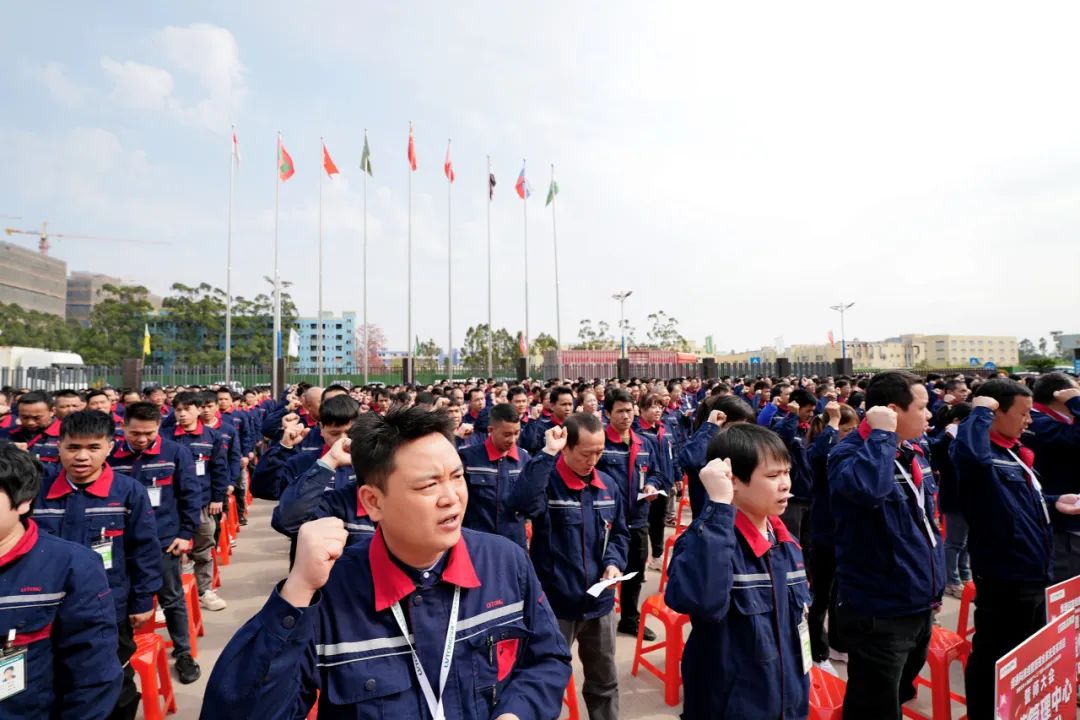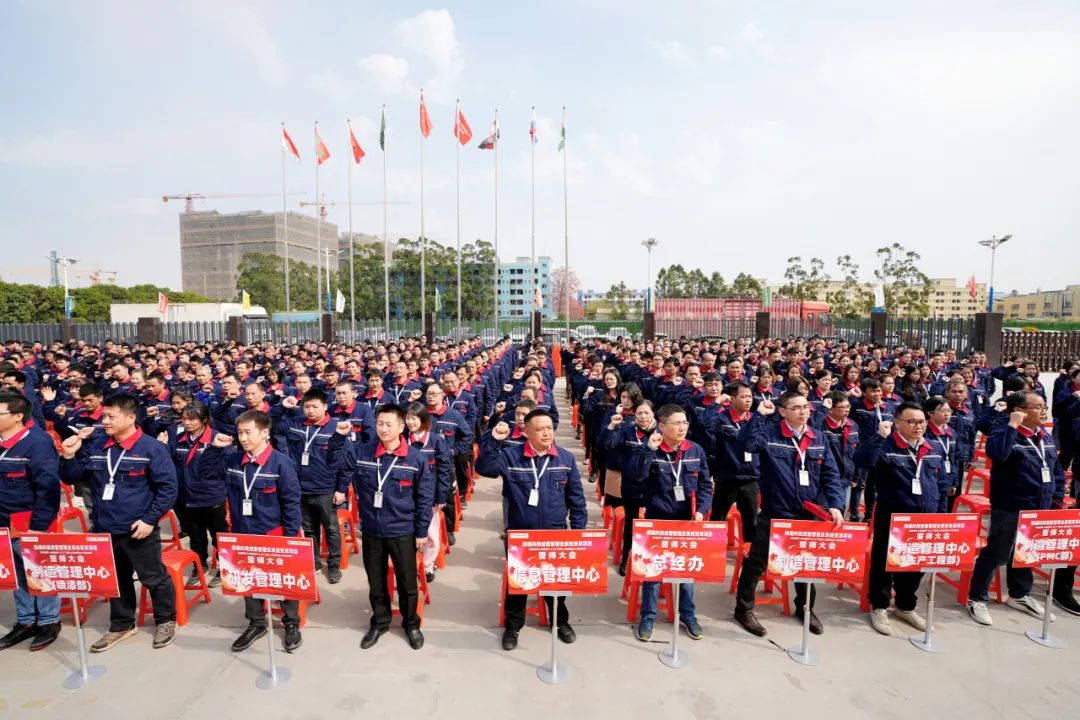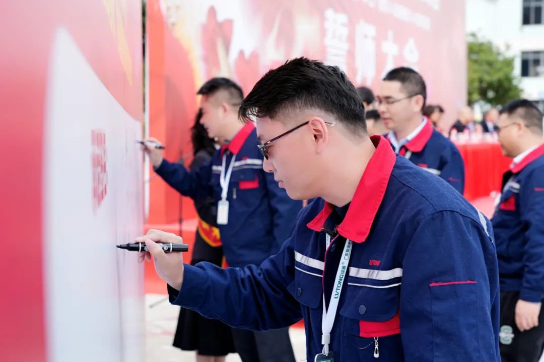 会上,全体人员进行了庄重的集体宣誓,热血戎装、士气如虹!彰显了2138CC太阳集团人的豪迈,随后,主管级以上管理人员在誓言喷绘上签名。