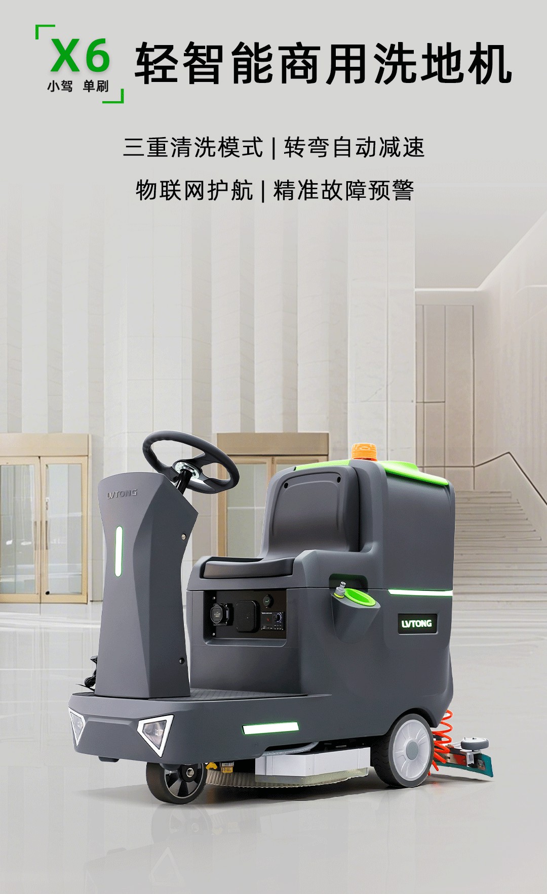 开启吸水电机时水刮自动下降 | 驱动后桥电机软启动,驾驶舒适 |