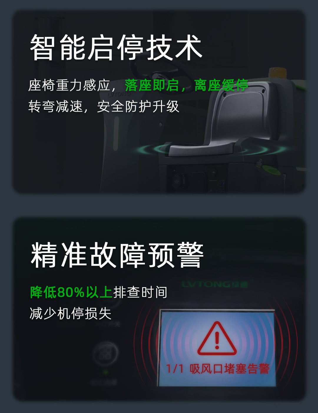 开启吸水电机时水刮自动下降 | 驱动后桥电机软启动,驾驶舒适 |