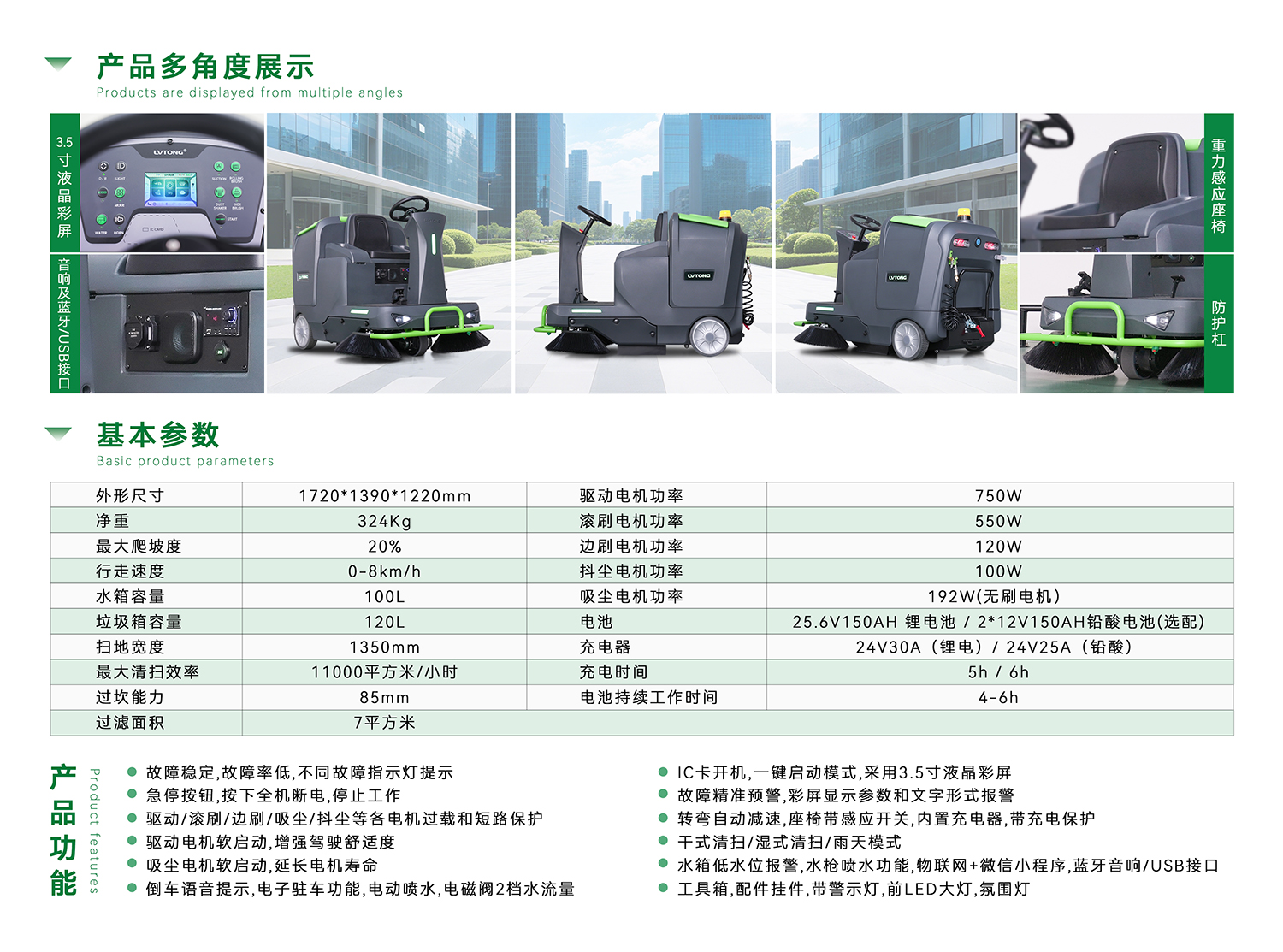 充电器:24V30A(锂电)/ 24V25A(铅酸)